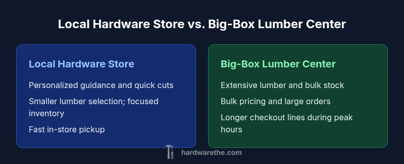 Local hardware stores typically excel in personalized service, hands-on product guidance, and rapid custom cuts, while big-box lumber centers offer broader stock, bulk pricing, and faster checkout. This quick comparison helps you decide where to shop based on your project needs for hardware and lumber, balancing support with selection.
