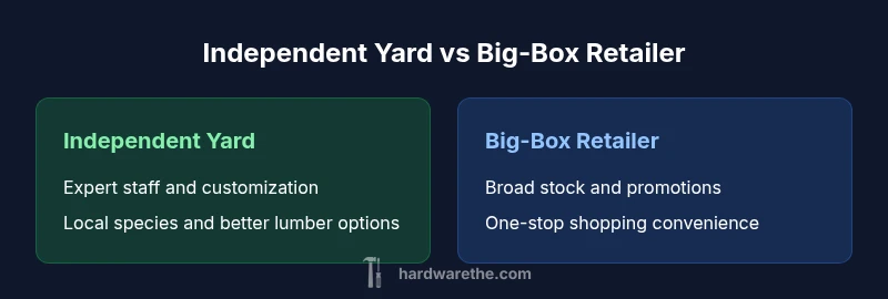 TL;DR: Local independent hardware and lumber yards near me typically offer deeper product knowledge, custom-cut lumber, and personalized service. Big-box retailers provide broader stock, price competition, and convenient one-stop shopping. For most DIY projects, start with a nearby independent shop for guidance and exact materials, then compare price and stock at a larger chain if needed.