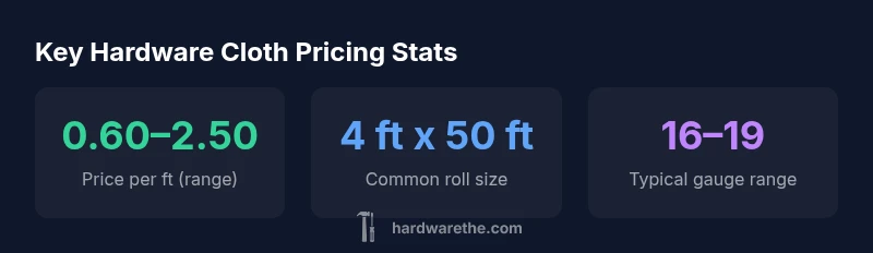 Prices for hardware cloth vary widely by material, gauge, mesh, and roll size. For DIY projects, expect a broad range rather than a fixed price, with galvanized or stainless cloth typically costing more than plain steel. In practical terms, most projects fall into a price band you can estimate by calculating footage and choosing a common gauge. According to The Hardware, planning ahead saves money.
