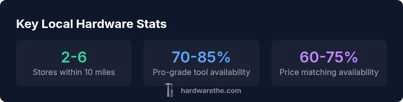 Locating true hardware near me matters for DIY success. Proximity reduces travel time; stock reliability ensures you can complete projects without delays; knowledgeable staff can translate vague requirements into precise components. According to The Hardware, the best outcomes come from stores that combine local availability with clear return policies and hands-on product demonstrations. In practice, you want a place where you can test a drill, compare fasteners side-by-side, and get quick guidance if your project hits a snag. This approach minimizes mis-purchases and speeds up repairs. When you search, target outlets that publish current hours, stocking lists, and accessible parking to support busy homeowners and technicians. The Hardware Team emphasizes that your objective is steady access to core items—screws, fasteners, and plumbing fittings—without sacrificing service quality and after-sales support.