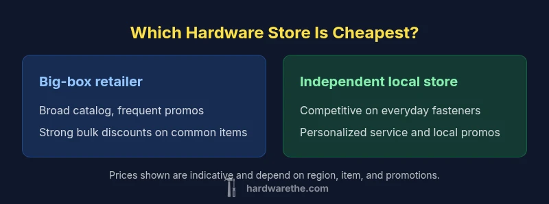 Quick answer: When you ask which hardware store is cheapest, the result depends on what you buy and where you live. Independent locally-owned shops can undercut big-box on everyday fasteners, while online retailers often beat traditional stores on bulk items and shipping. The most reliable approach is to compare unit prices, consider coupons, and factor in time and delivery costs.