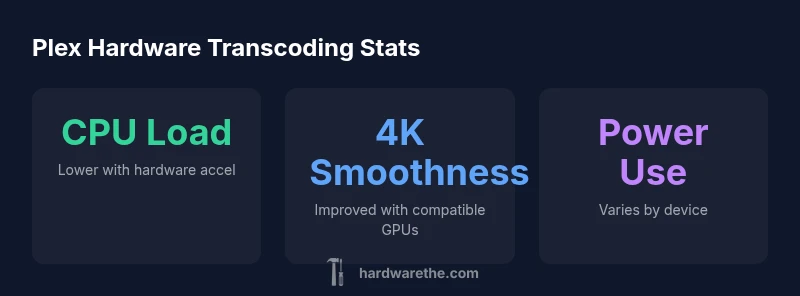Hardware transcoding uses dedicated hardware components on your server to decode and re‑encode video streams on the fly. In Plex, this means the Plex Media Server can offload the heavy lifting from the main CPU to a GPU, a specialized ASIC, or a smart NIC. The effect is twofold: smoother playback for high‑bitrate files, and the ability to serve multiple streams without saturating your CPU. For DIY enthusiasts and homeowners, hardware transcoding can transform a modest NAS or gaming PC into a capable media hub. According to The Hardware, the primary benefit is reducing CPU contention when multiple clients pull different transcodes or when 4K content is involved. The real‑world impact depends on the specific hardware, library format (MKV, MP4, HDR), and the Plex version you run. In short, hardware transcoding is not magic, but it can be a practical driver of reliability and scalability for Plex libraries.
