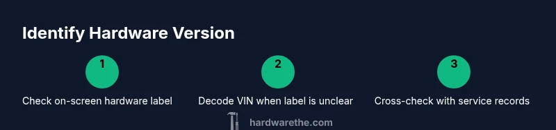 - Identify the hardware version using screen labels, VIN, and service records