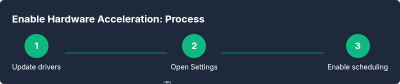 To enable hardware-accelerated GPU scheduling, update your GPU drivers first, then open Windows Settings and navigate to System > Display > Graphics. Turn on the Hardware-accelerated GPU scheduling toggle if available, and confirm any prompts. If you don’t see the toggle, your hardware or driver may not support it. After enabling, a quick reboot ensures all components initialize correctly and new GPU features take effect.