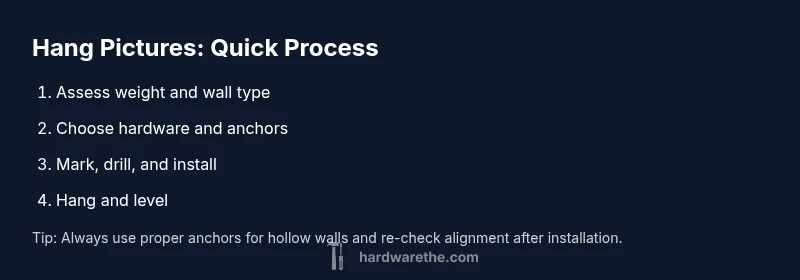 With the right hardware, hanging pictures is quick, clean, and secure. Start by estimating weight, wall type, and choosing appropriate fasteners: light frames use nails or hooks; medium frames use plastic anchors; heavy frames require screws into studs or masonry anchors. Locate studs, level the layout, and use a drill or hammer as needed to avoid wall damage.