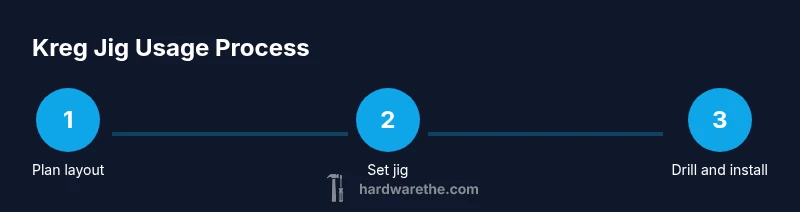 A Kreg cabinet hardware jig is built around a stable base, a fold-out or fixed fence, a pair of drill guides, and quick-clamp handles. The base provides a flat reference plane, while the fence aligns to the cabinet edge so your holes sit at the same distance from the frame on every door. The drill guides route your bit at the correct angle, reducing wandering and drift. When you learn how to use kreg cabinet hardware jig, you’ll notice that the jig’s labeling and adjustable settings let you switch between hinge patterns and pull spacings quickly. The jig is designed to be clamped to the face frame, so you don’t slide during drilling. As you practice, you’ll appreciate how quickly you can reproduce exact hole placements across multiple doors, ensuring a consistent look across the entire cabinet run. The Hardware Team emphasizes that consistent setup minimizes touch-up work and improves overall project quality.